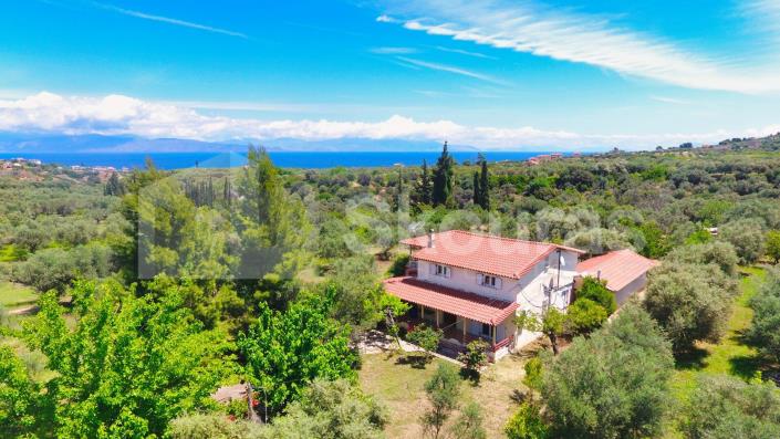 Discover a unique holiday home, nestled in a lush green paradise, just minutes from the seaside town of Akrata, in the region of Sylivainiotika. This is an independent two-level detached house, with a total area of 144 sq.m., built on a private plot of 2,000 sq.m. with the possibility of additional building, offering absolute privacy and panoramic views of mountains, sea, and endless greenery. On the ground floor, the spacious living room with its traditional fireplace creates a warm and welcoming atmosphere, while the semi-open kitchen is highly functional and bright. This level is completed by two comfortable bedrooms with built-in wardrobes, a full bathroom, and direct access to the covered veranda and barbecue area, inviting you to enjoy endless hours of relaxation with a view of the endless blue. The upper floor offers two additional spacious bedrooms with wooden ceilings exuding a traditional aesthetic, as well as a second bathroom, while the central hall leads to a balcony with stunning views of nature. The property is surrounded by a lush garden full of olive trees and fruit trees, such as orange and lemon trees, which bring their own magic every season of the year. The plot also includes an additional separate building of 50 sq.m., ideal for use as a guest house, storage room, or workshop, offering additional utilization possibilities. The house features individual oil heating, aluminum frames with double glazing for excellent thermal insulation, and air conditioning for cooling during the summer months. The distance from the sea is just 2.5 kilometers, offering quick access to the unique beaches of the area, while services such as schools, churches, and supermarkets are within close proximity. If you are looking for the perfect holiday home that combines the tranquility of nature with the convenience of quick access to city amenities, this detached house is the ultimate choice. For more information or a private visit, please contact: Mobile: 690 844 8844 Email:
