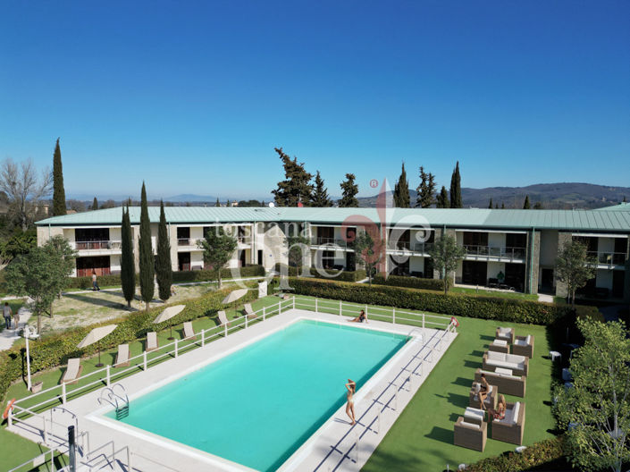 Each apartment, bright and elegant, with large windows leading to a private garden or terrace, represents the ideal refuge after a day of exploring the hills and vineyards that tell centuries of history. Here, you can relax or perhaps take a dip in the pool, while the fresh Tuscan air offers peace and relaxation.