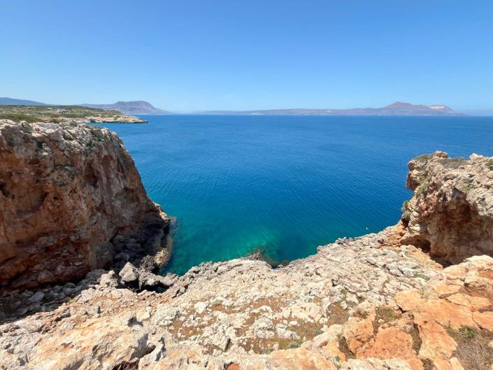 This stunning seafront plot for sale in Chania Crete is set just outside the village of Kokkino Chorio in the reagion of Apokoronas. It covers 8,300 square meters and already has a building permit for a 350-square-meter villa, with a remaining building capacity of 83 square meters. The land is right by the north coast and offers wide, open views of the sea.