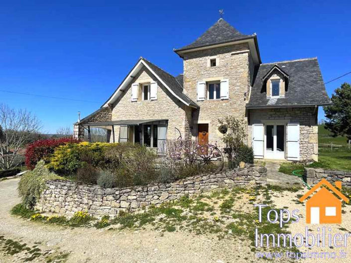 VISITE VIRTUELLE DISPONIBLE SUR DEMANDE. Située à proximité du village de Sanvensa (école et commerces), cette très belle maison à l’architecture typique du Ségala offre un lieu de vie calme et une vue féérique sur la campagne environnante. Elle totalise environ 136m2 habitables auxquels on peut ajouter une mezzanine (salle de jeu) et un sous-sol avec garage d’environ 106m2. Au RDC : une grande pièce de vie (séjour, salle à manger et cuisine ouverte) de plus de 50m2 donnant à l’avant sur une superbe terrasse couverte et à l’arrière sur le jardin. Une chambre de 10m2, une salle de douche et un WC complètent ce niveau, offrant la possibilité de vivre de plain-pied. A l’étage, 3 chambres (12, 12 et 13m2), une salle de bain, un WC et une mezzanine dans la tour aménagée en salle de jeu pour enfants. Autres atouts : fenêtres doubles vitrages, chauffage au sol (chaudière fioul), insert bois dans le salon, portail d’entrée (porche) et portail du garage automatisé. Assainissement individuel à finir de mettre aux normes en ajoutant simplement une ventilation (devis disponible). La piscine est à terminer (le liner est commandé et payé). L’emplacement de cette maison est idéal pour une famille qui cherche le calme de la campagne tout en restant à proximité de toutes les commodités (Sanvensa, Villefranche de Rouergue à 10min). Contact : Pierre Jean LACOMBE : Tel : 06 30 40 86 83 Agent Commercial (RC No : 508 933 314)