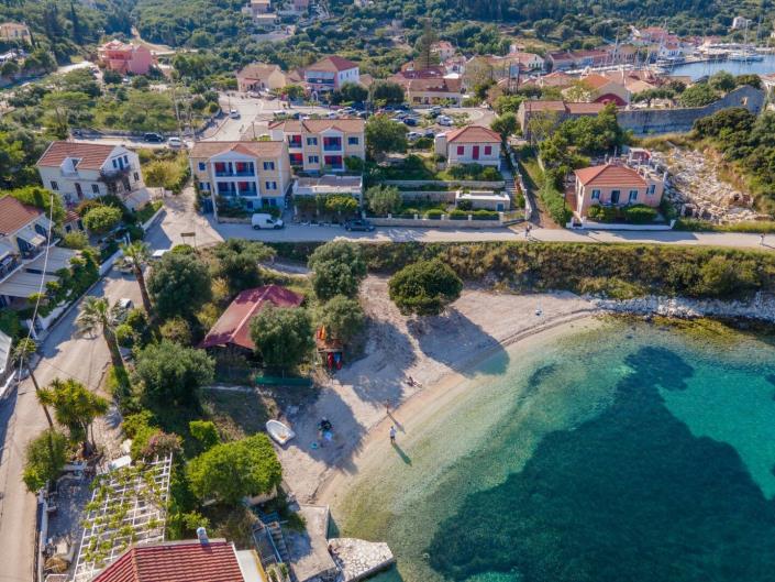 picturesque Zavalata beach, in Fiskardo, we offer you for sale this lovely 45 sqm apartment, which consists of a single dining-kitchen area, two comfortable bedrooms and a bathroom.