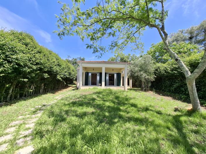Set on a 1000 sq.m. privately owned plot, the property includes mature olive and other trees, a dedicated parking area, and full utility connections, including electricity, water, air conditioning, telephone line, and internet access. The house is fully furnished and has existing foundations that support the potential addition of a second floor. Local building regulations also allow for further construction on the plot.