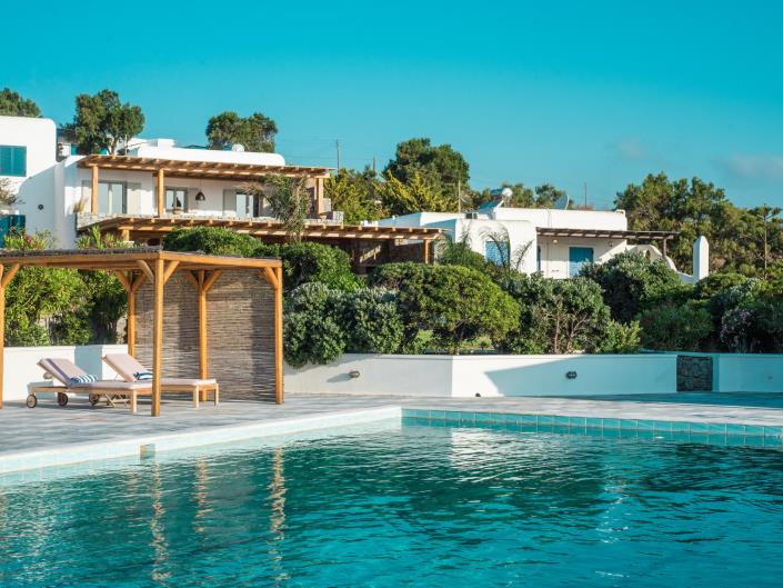 This fully renovated villa is part of a house complex just 80 meters from Kalafatis Beach, located in the southern part of the island and 10 km from Mykonos Town.