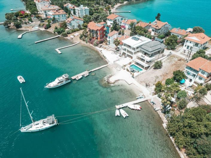 Set on a 500m² plot with 256m² of total living space, this stunning property features a private swimming pool, direct access to the sea via a private jetty and uninterrupted panoramic views in one of Fethiye's most serene and exclusive island settings.
