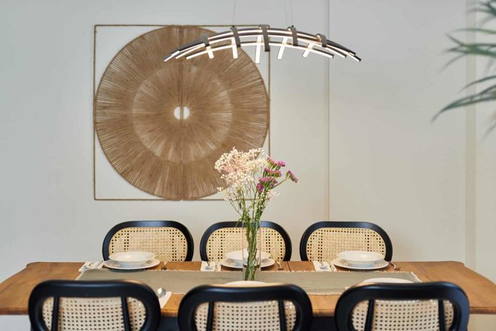 The apartment has a spacious living room, modern dining room, fully equipped kitchen, two bedrooms and two bathrooms.