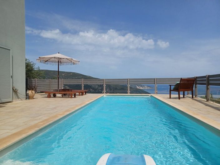 Property Code: 1-1631 - Villa FOR SALE in Kefalonia Argostoli for € 750.000 . This 240 sq. m. furnished Villa consists of 3 levels and features 4 Bedrooms, Livingroom, Kitchen, 3 bathrooms . The property also boasts Heating system: Central oil heating, tiled and wood floors, view of the Sea, Window frames: Aluminium, Armourplated door, accessibility for people with disabilities, parking, a storage unit sqm, garden, fireplace, swimming pool, A/C, electrical appliances, insect screens, double-glazed windows, solar-powered water heater, BBQ, photovoltaic panels, playroom, satellite dish, open space, internal staircase. The building was constructed in 2008 Plot area: 370 s.q. . Building Energy Rating: A Distance from sea 3500 meters, Distance from the city center: 25000 meters, Distance from nearest village: 200 meters, Distance from nearest airport: 30000 meters, In one of the most beautiful areas of Kefalonia, in Angonas settlement, this unique villa is available for sale. Its impressive architecture combines traditional with modern aesthetics, creating a very beautiful ensemble. The property of 240 sq.m. is fully furnished, has three levels and is developed on a plot with a total area of ??370 sq.m. It consists of 4 spacious bedrooms, a comfortable living room, a fully equipped and functional kitchen and 3 bathrooms.The villa was built in 2008 and has excellent energy efficiency, utilizing modern materials and technologies. The abundant natural light and the unobstructed sea view create a warm and welcoming environment. Aluminum frames, tile and wood floors, well-crafted stone details, fitted wardrobes and spacious storage areas are just some of the extra features that make this property unique and make staying in it even more comfortable and relaxing.The villa also has many facilities and amenities, such as a swimming pool, BBQ, satellite dish, photovoltaics for its energy autonomy and a tasteful garden for those who love nature and tranquility. The property benefits from its unobstructed view towards the blue horizon of the Ionian Sea, its atmospheric aesthetic and its unique location.