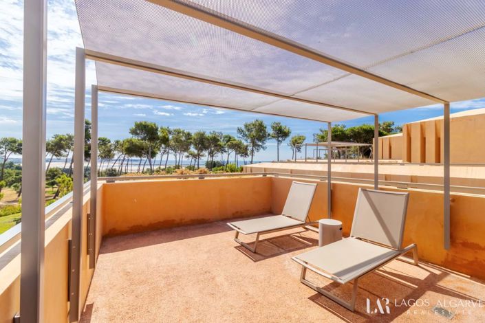 À quelques pas du Clubhouse, de la piscine commune et dautres commodités du développement, la propriété offre une vue imprenable sur le terrain de golf, lestuaire dAlvor et le littoral, visible des deux niveaux de la résidence.