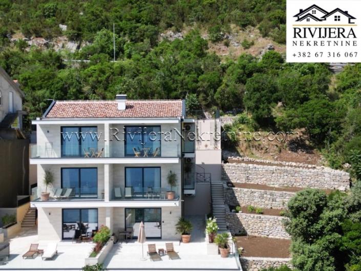 Super luxurious two-bedroom apartment first row to the sea, Herceg Novi Njivice. Apartment area 59 m2, fully furnished (designerly decorated). Room layout: entrance hall, bathroom, two bedrooms, living room with kitchen, terrace (with excellent sea view). Below the building, there is a beach, with the possibility of mooring boats/speedboats along the coast. Distance from Igalo 2 km, Herceg Novi 4.5 km, price: 300,000 euros