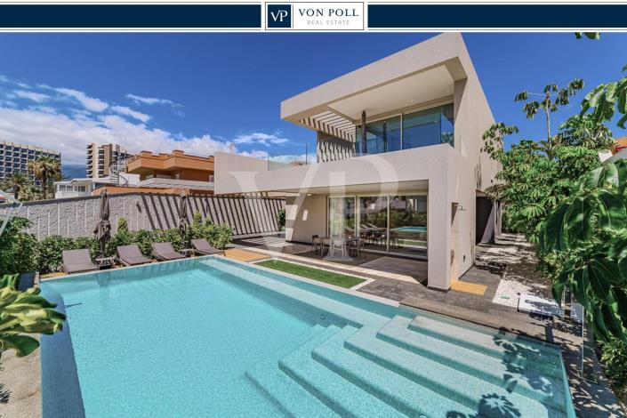Luxury villa of the highest class in Playa de las Américas, just a few steps from the sea in a prime second-line location. This recently built designer villa, created by a renowned star architect from Tenerife, combines top construction quality with the most modern living comfort. Spread over two levels, the fully furnished property offers four spacious bedrooms and four elegant bathrooms. The open-plan living area impresses with light-flooded rooms and high-end finishes throughout.