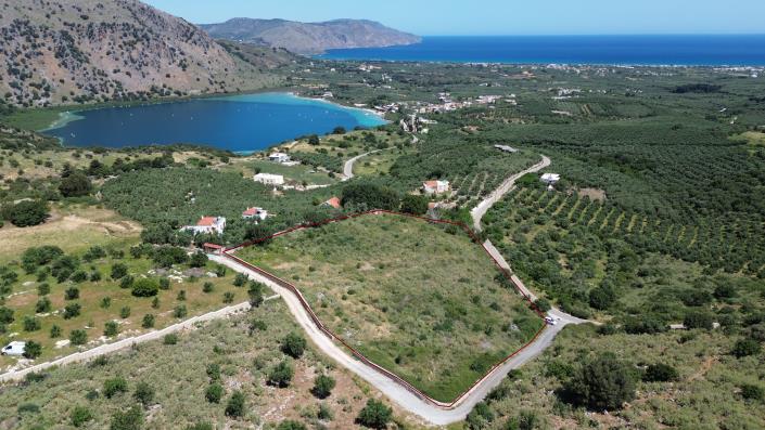For sale: a prime plot of land measuring 10.675,52 sq.m. near the stunning Lake of Kournas in Crete, with building rights up to 210 sq.m. This exceptional property offers breathtaking panoramic views of the Cretan Sea, Lake of Kournas, and the majestic White Mountains. With two frontages on asphalt roads, access is easy and convenient, and all necessary supplies and utilities are located nearby.