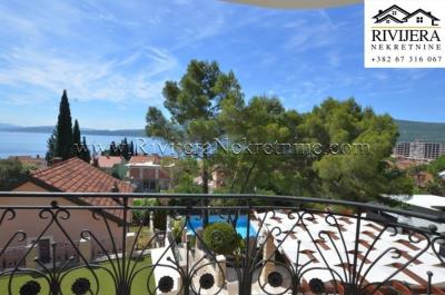 Two apartments for sale in the luxurious building Baosici, Boka Kotorska. The apartments are located on the second floor, with a total area of 121 m2 (Studio apartment and two-room apartment). Room layout, studio: entrance hall, bathroom, living room with kitchen and terrace with a beautiful view of the sea. Two-room apartment: entrance hall, living room with kitchen and dining room, two bedrooms, two balconies and two bathrooms. Apartments in excellent condition, fully equipped, with a view of the sea. Building with swimming pool, sports field, cultivated and fenced yard. Price: €365,000