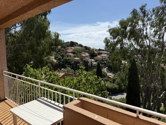 Bormes les Mimosas house for sale. This town house has clear views of the hills. There are two floors and a converted attic. On the first floor there is a fitted kitchen and a living room with a terrace of 26 m². On the first floor are three bedrooms, a bathroom and toilet and a balcony. A staircase provides access to a converted attic that can be used as a childrens bedroom with a toilet. Outside there is a small garden of 81m². A closed garage completes the property. Situated in a quiet residential area five minutes from the Pin de Bormes. Sold by Cellier & Coates estate agents Bormes 04 94 01 02 01.