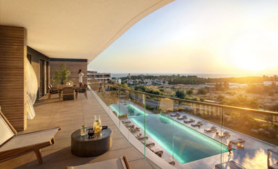 Discover the perfect blend of modern living and stunning views with this off-plan very spacious 2 bedroom and 2 bathroom apartment for sale in Kato Paphos. This thoughtfully designed space spans 102m² and is located on the first floor of a secure, three-story gated complex, complete with an elevator for easy access.