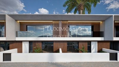 Maison de ville moderne de trois chambres dans un nouveau condominium privé appelé Zion Oasis, avec piscine et jardin privés, à environ 10 minutes de la plage de Burgau, à vendre à Almádena, Luz, Algarve.