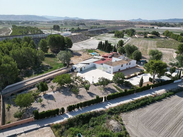 7 Bedroom country house with 9 x 4 pool and outbuildings. We are very proud to offer for sale, this lovely 7 bedroom, 3 living room house between Villena and Caudete with a large courtyard, swimming pool and outbuildings.The house sits in around 7000m2 of land, with around 4000m2 fenced in around the house, and the area around the house being concreted, giving a lovely private garden area, plus low maintenance area for parking, with the large car port, as well as a garage to the side of the house, large enough for at least two cars, plus further workshop area. This area also has a large garden area with apples and pears plus other fruit trees.The house is an older property, but fully updated by the current owners, including triple glazed windows to most areas (with those areas not triple glazed being double glazed units), with good electric system, and the ability to split into two halves (upstairs and downstairs are connected, but the upstairs area has it's own external doorway as well, ideal for guests staying).As you enter the ground floor, you are greeted with the traditional Spanish bedrooms each side of the corridor. These are both very spacious. This in turn leads to the first of the two living rooms on the ground floor. A kitchen leads off from this, with the third bedroom being to the side (3 bedrooms in total on this floor), and a ground floor bathroom, before leading to the second very large living area, and access to the long garage, with sufficient space for at least two cars.The top floor is accessed via the first living room, or via a door accessible from outside (from the courtyard, with the pool and outbuildings). This has a further bathroom, a huge living room with a bedroom off it, and a corridor to the further 3 bedrooms (4 in total).To the outside, there is a fenced area, which is suitable for football or tennis, and to the rear is a courtyard area, which houses the large 9 x 4.5m pool, with a covered terrace area (this is in sandwich panel, so well insulated from the heat of the summer or cold of the winter). This terrace area is very large, and leads to the BBQ room, another good space, with both open BBQ and enclosed bread/pizza oven. To the side again is a good sized storage room, which was previously used as a gymnasium. This area has two doorways, one to the garage side, and the other leading to the opposite side of the house.Please watch the video to get a better understanding of the layout of this large house.