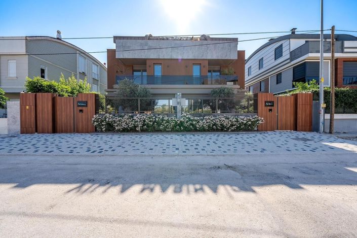 The villas are built on a 470 m² plot and consist of 3 floors and 2 separate blocks. These villas, which prioritize privacy, feature a private pool, private garden, and a security camera system. The ground floor includes a living room, separate kitchen, bathroom, and winter garden. The first floor has 3 bedrooms, 2 en-suite bathrooms, 2 dressing rooms, a bathroom, and a balcony. The third floor includes an open-plan kitchen, bathroom, bedroom (which has a dressing room and en-suite bathroom), 2 terraces, a jacuzzi, and a pantry.