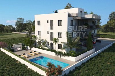 Modernistic 2-Bedroom first floor apartment with communal swimming pool and sea views ideally located on a new complex in the sought-after area of Kapparis, close to all the local amenities, tavernas, shops and bars and short distance to the Ayia Triada Beach and New Marina!