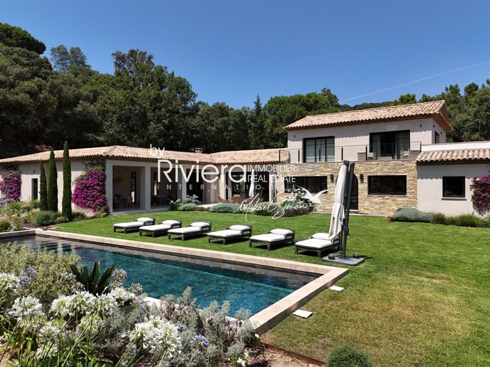 Nichée au coeur du secteur très prisé de Gigaro dans un domaine privé, calme et sécurisé, Propriété d'exception entièrement repensée en 2023 par une architecte tropézien de renom ! Elle marie avec élégance le charme méditerranéen à un confort contemporain de très haut standing... Vaste hall d'entrée avec un escalier aux superbes volumes, La pièce de vie principale traversante baignée de lumière s'ouvre sur l'extérieur créant une parfaite harmonie entre intérieur et nature environnante... 5 superbes suites dont une somptueuse chambre de Maître à l'étage avec une vue sur la Mer... Très belle cuisine 'professionnelle', bureau, buanderie, salle de jeux... Une Piscine de 14mx4m, une terrasse couverte avec cuisine d'été complète ce jardin plat entièrement paysager sur plus de 5800m2 ! Garage double... Un havre de paix dans un écrin de verdure... Des superbes prestations et des matériaux premium !