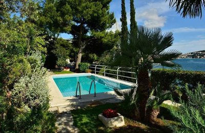 HOT OFFER!A unique luxury villa with a swimming pool on the FIRST LINE of the SEA in the vicinity of Dubrovnik abounding by millionaires!The villa area is 300 m2.