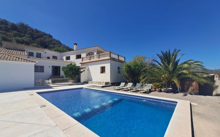 Set in a raised position which is easily reached this property has been professionally renovated and reformed by the current owners. There is a little more work to be completed which is currently ongoing and the price is for the property finished however the owners would happily negotiate if the new owner wished to self finish. It is accessed by a short and easy passable track and has a large parking area with a large garage which also has internal access into the main house. To the front there is a large 10m by 5m swimming pool with lots of terraces to sit and relax and enjoy the sun and the fantastic is a little finishing to do in this area that will be completed soon. Steps lead up to a front courtyard which is also an ideal seating area then into the house. On entering the property there is a large welcoming entrance hall. To the left is the area currently under reforming which when finished will be two bedrooms and a bathroom and a snug area with internal access into the garage which can hold up to three cars or could in fact be further accommodation. This area is ideal to rent out or an opportunity for a large family who have relatives who wish to live independently as it has separate access from the main house.