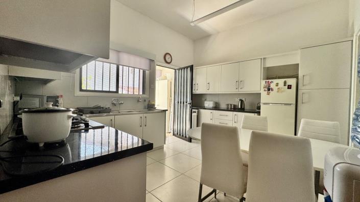 A private driveway leads to the main entrance of the home. Inside, you’ll find a bright and airy open-plan living and dining area, enhanced by large patio doors that open onto a covered veranda—ideal for al fresco dining or simply relaxing while enjoying the tranquil garden.