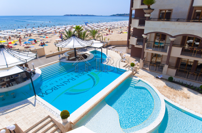 Golden Rainbow VIP Residence is a modern, first-line complex, set directly on the sandy beach of Sunny Beach. The area offers everything needed for both holiday and year-round living: supermarkets, restaurants, cafes, pharmacies, medical center, entertainment venues and bus stops. Nessebar’s Old Town is just 4 km away and Burgas Airport – 35 km.