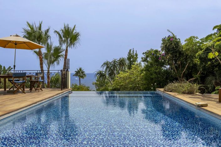 À l’extérieur, cette villa avec piscine incarne l’art de vivre azuréen. Depuis les jardins paysagers et les terrasses panoramiques, la vue s’étend sur les îles de Lérins, Palm Beach et le Cap d’Antibes. Le pool house couvert accueille un espace modulable de détente ou de réception, avec douche et toilettes, tandis que la cuisine d’été entièrement équipée (barbecue intégré, friteuse, plans de travail en pierre, grande table sous auvent rétractable) promet des moments conviviaux en plein air.