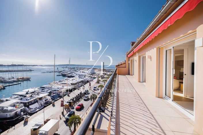 - Un salon/salle à manger de 50m2, cuisine américaine, donnant sur une grande terrasse filante de 70 m2 avec vue panoramique sur la mer, le port et le Palais des Festivals.