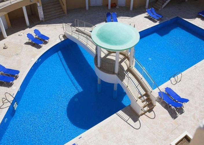 The property is located in a complex which is an award-winning development superbly situated in the heart of Pafos,it enjoys an elevated position with some stunning views across the town below, stretching towards the coast. It is of Venetian style, further enhanced by the bridge and gazebo across the swimming pool. Airport, golf, Water Park, restaurants and shops are a short distance.
