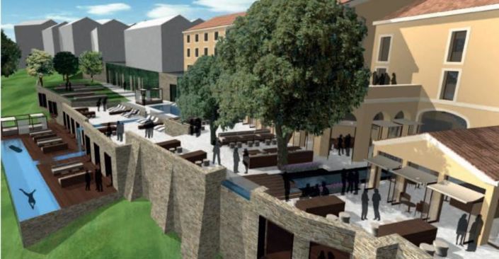 five-star hotel with a fine dining restaurant and barstate-of-the- art spapolo club facility with stables and seven professional polo fields The new 5***** STAR HOTEL will consist of existing old stone buildings and new buildings. It will located at the entrance of the XV century town of Motovun. The new hotel building rises within preserved existing walls in order to preserve intact the town’s main street.The hotel complex will affect five existing houses (noted 1 to 5) as well as two empty lots (noted A and B). The hotel building is divided into two compounds by the main road. Both sides are conected by a tunnel.The process of new architecture and restoration of the existing structures is a strong statement towards the preservation of this Medieval heritage town.