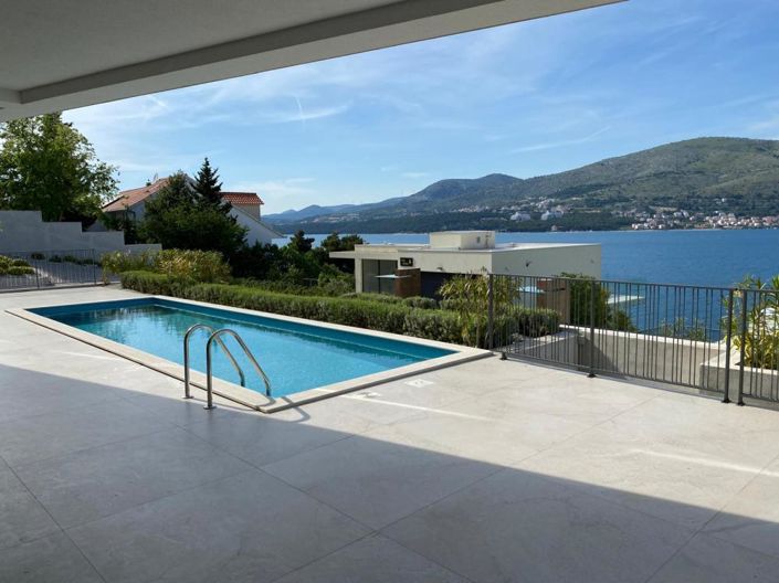 Split International Airport is just 13 km away.Blending elegance with modern design, this villa seamlessly fits into its surroundings and is part of a luxurious complex of seven modern villas.The villa sits on a 728 m² plot and has a living area of 326 m² across three floors.The basement includes a bathroom, a laundry room, and a spacious 53 m² area perfect for a fitness center, wellness area, or winery, depending on the owner's preference. The ground floor features a dining room, kitchen, living room, bathroom, and storage room, along with a large terrace with a modern swimming pool and a garage for two cars. The first floor comprises four bedrooms, three additional bathrooms, and a spacious outdoor terrace with a wonderful sea view.The bright, spacious rooms are finished with exclusive features, including 120x240 cm ceramic tiles, wooden floors, frameless interior doors, and large windows.Carefully selected lighting complements the garden design, creating a special ambiance.Elegant design, comfort, proximity to the sea, and excellent connections to numerous tourist centers in Dalmatia give this exceptional property great potential for tourism rental! Ref: RE-LB-IRO1030Overall additional expenses borne by the Buyer of real estate in Croatia are around 7% of property cost in total, which includes: property transfer tax (3% of property value), agency/brokerage commission (3%+VAT on commission), advocate fee (cca 1%), notary fee, court registration fee and official certified translation expenses. Agency/brokerage agreement is signed prior to visiting properties.