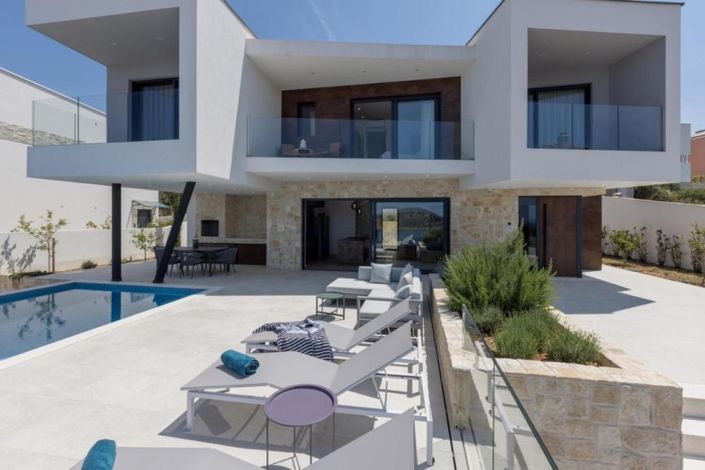In the quiet outskirts near Rogoznica lies an opulent villa, poised in proximity to one of the Adriatic's most exquisite marinas. Rogoznica itself is a cherished haven for tourists, replete with a medley of eateries, boutiques, and pristine pebble shores.This villa boasts a grand total of 270 square meters across three levels. The ground floor welcomes you with an expansive living area, a contemporary kitchen, a dining enclave, and a discreet lavatory. The living quarters extend to a capacious terrace, where an alluring pool beckons alongside a lounge, offering a sweeping spectacle of the azure sea and the scattered islands.Ascending an internal staircase, the first floor reveals a trio of bedrooms, each graced with its private bath. As a bonus, the villa encompasses a basement, presently serving as supplementary storage space.In front of the villa, a parking area provides convenience.This domicile marries a modern aesthetic with an enviable location, nestled in close proximity to prime tourist hubs and some of the most resplendent beaches. It stands as a strategic investment in the realm of tourism or an idyllic summer retreat of your very own. Ref: RE-LB-IRO1718Overall additional expenses borne by the Buyer of real estate in Croatia are around 7% of property cost in total, which includes: property transfer tax (3% of property value), agency/brokerage commission (3%+VAT on commission), advocate fee (cca 1%), notary fee, court registration fee and official certified translation expenses. Agency/brokerage agreement is signed prior to visiting properties.