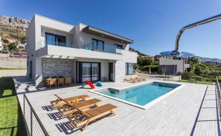 Perfectly positioned in a beautiful and tranquil location near Split, this luxurious villa captivates with its charm. Situated on a slope, it offers unforgettable views from every floor.Just a 10-minute drive from the center of Split and the historic Diocletian's Palace, this villa combines luxury and practicality seamlessly. Split Airport is only 21 km away.Newly built, the villa boasts 240 m² of living space on a generous 1,000 m² land plot.