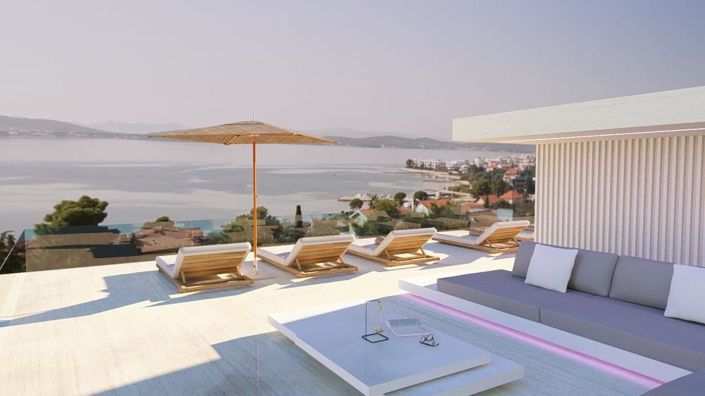 Step into a world of elegance and luxury in the charming heart of Sukošan, where your dream lifestyle is within reach!We are excited to introduce three stunning designer villas currently under construction, perched on a hillside with breathtaking views of the crystal-clear sea.These modern villas offer a serene escape, while being just three minutes from all the essentials—combining the best of privacy and convenience.Each of the three villas boasts an impressive 502 m² of net usable space, set on a generous 850 m² land plot.