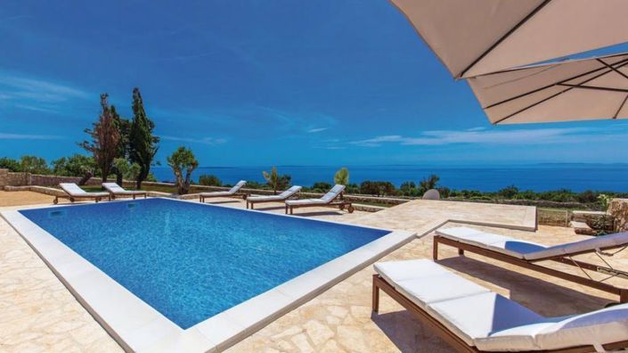 A spacious terrace with a swimming pool and an enchanting view of the sea is the central part of the entire house and serves as the main relaxation area.