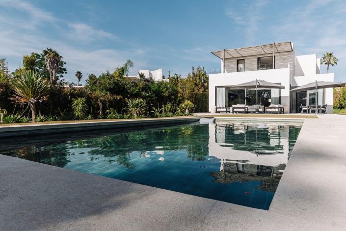 This magnificent contemporary-style villa, located in Guadalmina Baja and just 300 meters from the beach,