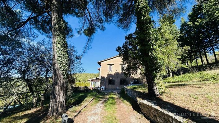 With a 3,000 sq m garden and views, this two-story property for sale in Castellina in Chianti features an annex for conversion and a 100 sqm terrace. A Tuscan classic awaiting its next chapter. Set just one kilometre from the historic hilltop village of Castellina in Chianti, in the heart of Tuscany’s famed wine country, this traditional country residence offers panoramic views and exceptional potential. The house extends to approximately 190 square metres (2,045 sq ft) arranged over two floors, it is a semi-detached with garden on three sides. Constructed in 1974, the interiors retain a classic Tuscan character, with terracotta floors in the living areas, parquet in the bedrooms, and a handsome open fireplace anchoring the main sitting room. A superb 100 sq m (1,075 sq ft) terracotta-paved terrace, enjoys sweeping views, an ideal setting for outdoor entertaining or quiet contemplation. The ground floor comprises a welcoming entrance hall, large living room with fireplace, kitchen, bathroom, and a useful understairs laundry area. A timber staircase leads to the upper floor, where four double bedrooms and a family bathroom. The house benefits from a dual access layout, with entrances from both the garden and the terrace, enhancing its flexibility for potential division. Beneath the terrace, a 70 sq m (750 sq ft) annex, currently used as garage and storage space, presents a compelling opportunity for conversion into a self-contained guest apartment or artist’s studio, subject to planning. The property is enveloped on the three sides by a private, fully fenced garden of approximately 3,000 sqm (0.75 acres), accessed via a gated private driveway extending 500 metres from the main road. The grounds offer both privacy and scope for landscaping, a swimming pool, or kitchen garden. Essential services are already in place, including mains water, telephone line, internet, and heating via LPG system, wood-burning fireplace, and pellet stove. This is a compelling restoration prospect for those seeking to create an elegant country retreat in one of Chianti’s most desirable locations, an idyllic balance of seclusion and convenience, just 1 km from local amenities and within easy reach of Siena, Florence, and major international airports. Property Ref: CNT3368