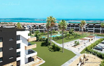 Située dans le quartier résidentiel calme de La Siesta à Torrevieja, cette nouvelle résidence offre un cadre idéal aussi bien pour les vacances que pour y vivre toute l’année. À seulement 10 minutes en voiture des longues plages de sable de La Mata et tout aussi proche du centre de Torrevieja, les logements se trouvent également à proximité des célèbres lagunes salées. Les services quotidiens tels que supermarchés, centres de santé, restaurants, pistes cyclables et le parc naturel de La Mata sont facilement accessibles, tandis que l’aéroport d’Alicante se rejoint en environ 45 minutes en voiture.La résidence propose des appartements modernes avec des agencements bien conçus. Chaque logement comprend 2 chambres et 2 salles de bains, dont une en suite. Selon le modèle, vous pouvez choisir entre des appartements avec de spacieuses terrasses ou des dernier étage avec terrasse sur le toit privée, tous deux conçus pour profiter pleinement de la lumière naturelle et de la vie en plein air toute l’année.L’ensemble est constitué de plusieurs immeubles de faible hauteur entourant un espace commun attrayant. Celui-ci comprend une piscine pour adultes et une pour enfants, de vastes espaces verts avec gazon naturel, un espace barbecue, une aire de jeux et un court de padel. Cet environnement sécurisé et fermé offre un mélange convivial de détente et de loisirs pour tous les âges.Les intérieurs sont soigneusement réalisés avec des matériaux de qualité. En offre spéciale de lancement, le prix inclut un pack mobilier complet, une cuisine entièrement équipée avec électroménagers, des stores enrouleurs, des luminaires ainsi qu’une climatisation gainable. Chaque appartement dispose également d’une place de stationnement et d’un débarras, apportant confort et praticité au quotidien.Grâce à son emplacement privilégié, à ses installations collectives complètes et à son excellent rapport qualité-prix, cette résidence constitue un choix attractif pour tous ceux qui recherchent un logement moderne sur la Costa Blanca Sud. Que ce soit pour des vacances ou comme résidence secondaire, ces appartements allient style, confort et atmosphère méditerranéenne.