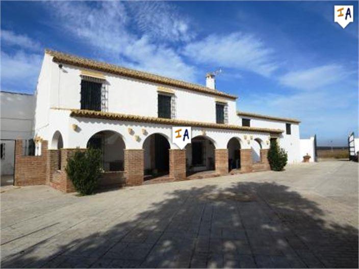 This is an amazing opportunity to purchase a traditional cortijo in the heart of Andalucia, located just a short 5 minute drive from historical Antequera and sitting within a plot of over 130,000m2 of land which consists of stables, paddocks and land which is currently being cultivated for asparagus. The grounds also offer a private swimming pool area, large garage with storage room , 10 interior stables and a large nave which is linked to open paddocks allowing for horses to graze inside or out with ease. This spectacular property has 5 bedrooms, 3 bathrooms and a large open plan lounge diner with 2 open fireplaces and a beautiful rustic kitchen that opens out on to a private courtyard ideal for fiestas and celebrations. The property is registered to have horses and has mains electric and connection to 4 separate well's throughout the land. This really is a fabulous opportunity for any equestrian all you are your horses.