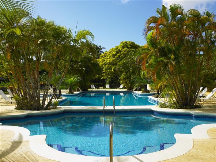 Set within large landscaped gardens which border the Golf course 11th fairway. This stunning 4 bedroom, 4.5 bathroom villa, is located on a ridge and benefits from the sea breeze and stunning views of the estate, golf course and Caribbean Sea. The gated entrance opens onto a large courtyard, which includes ample parking space and a covered parking area, large enough to accommodate 2 cars.The unique design for this villa is called 'Plumbago' and is the creative work of Jorge L Esteban,PA , an Architect of international repute who wished to show his skills in Barbados.The grand pillared entrance opens onto a reception / lobby area, which leads into the dining and living rooms. To the right is a beautiful coral stone staircase with wrought iron and mahogany wood railings, leading upstairs to the master bedroom suite with a balcony and office area. The spacious and comfortable living room is tastefully furnished and decorated with neutral colours, providing a comfortable and relaxing area. The living room also includes large French doors, which open onto the outdoor terrace and pool.The fitted kitchen is well equipped, tastefully finished in painted wood and includes double windows over the sinks, which provide a view of the garden and palm trees. The kitchen also leads onto an outside drying area.The dining room, which is adjacent to the kitchen is large enough to comfortably seat 8 people and includes large windows and French doors, which open onto the covered terrace area.The covered terrace area, which leads onto the sizable pool, features a lounging area with Caribbean style furniture and dining area with pool bar, perfect for dining and entertaining.The ground floor also includes 2 large en-suite bedrooms. Bedroom 1 includes ceiling fans, air conditioning, twin beds, walk in closet and en-suite bathroom with bath, shower and a large arched window.Bedroom 2 includes pickled pine doors, a queen bed, ceiling fans, air conditioning and arched French doors leading onto the terrace as well as en-suite bathroom, which includes a large arched window, bath and a shower.The master bedroom suite includes a large oversized bathroom with twin sinks, bath and shower and well appointed private balcony from which you can enjoy the breathtaking views of the fairway and the sun setting over the Caribbean Sea.