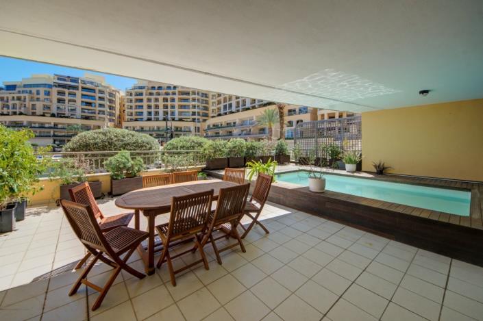 A unique and fully furnished luxury apartment located in the prestigious Portomaso development, finished to the highest standards. This stunning home features a spacious open-plan kitchen, living, and dining area that opens onto a large front terrace with a private pool and breathtaking views of the picturesque marina. The property offers three double bedrooms, each with its own en-suite shower or bathroom, as well as a main bathroom. Additional features include a reception area, a dedicated office room, a washroom/store room, and full air-conditioning throughout. A private car space is also included. This exceptional property provides an ideal blend of comfort, elegance, and exclusivity in one of Malta’s most sought-after addresses.