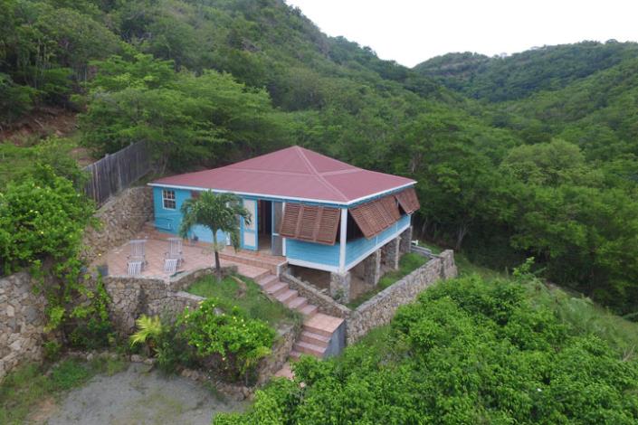 A small detached cottage situated high on the hillside near the end of the Turtle Bay road with views over the bay and into the open sea.