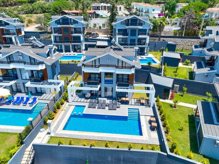 These stunning 4 bedroom all en-suite detached villas are located in Ovacik. Nestled on the mountainside of Mount Babadag, these villas enjoy panoramic views over the surrounding countryside, restful Pine Forests and in the far distance the sea view of Oludeniz. Built to a high specification these very spacious villas offer fantastic value for money and are ideal for family holidays, permanent living or to own as a rental investment property. Ovacik is a quiet village with many shops, restaurants, bars and cafes. For those that enjoy peace and tranquility Ovacik is the place for you, the cool fresh mountain air provides a wonderful relief from the scorching heat in the summer months. If you wish to travel further there is a local Dolmus that runs every 5 minutes in the season to the very lively village of Hisaronu the famous beaches of Oludeniz, and in the opposite direction the harbour town of Fethiye.