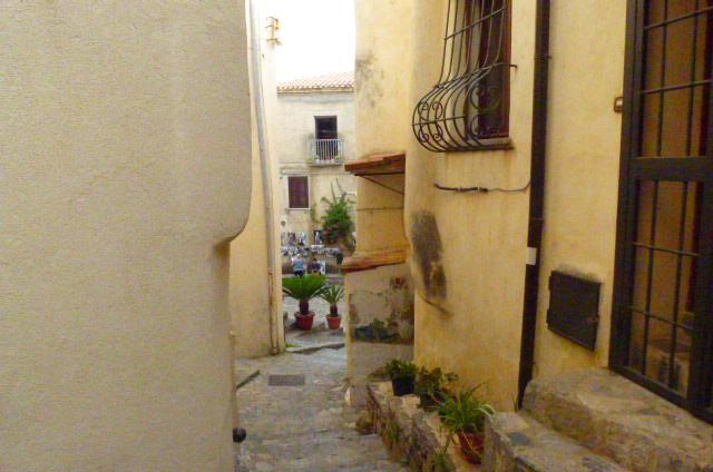 From the ruins of a Norman castle and parking a short walk along Via Castello into the narrow streets we have a three storey townhouse for sale.