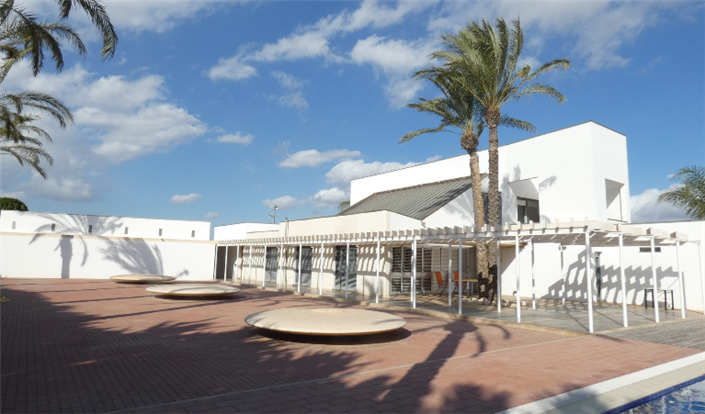 This luxurious 300m2 modern villa has 3 bedrooms 3 bathrooms + an outside bathroom by the swimming pool. It sits on a 50,000m2 plot with 10,000m2 being fenced off for the garden areas and is located in a rural area called Los Almendricos, only a few minutes by car to Lorca city.