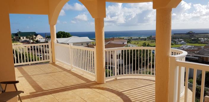Magnificent fully-furnished house in immaculate condition for sale in Frigate Bay, St. Kitts. This house commands a spectacular view of the Frigate Bay area including the Atlantic ocean. This property contains a main house on the upper level and 2 self-contained 1 bedroom apartments. However, the house is also designed to be used as a 2-family house also as one of the 2 apartments has direct connection to the main house.