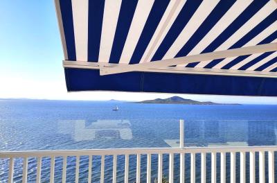 EXTRAORDINARY PENTHOUSE, first line, literally on the sea, 140 m2 with spectacular views, all exterior to the two seas. Mediterranean and Mar Menor. Located in one of the best urbanizations of La Manga del Mar Menor, Cabo Romano, and in the best place in the urbanization, at the very end of the cape, so that not a single building can be seen; just the sea, the sky, and beautiful islands. Such orography allows you to enjoy two coves practically exclusively for urbanization. The elevator gives direct access to the sea or the pool as desired. Magnificent subtropical climate, the warmest in mainland Spain. After years of traveling around the world, we have never encountered such wonderful sunsets. With a large living room, large kitchen with office, three double bedrooms, all exterior, two bathrooms, one en suite and the other next to the other bedrooms. air conditioning throughout the house. A magnificent 18 meter long terrace, part of it glazed and the rest open, with glass protection for children and automatic awnings. The urbanization has two swimming pools and a tennis court; Concierge, alarm, internet, security and total tranquility. A paradise four hours from Madrid on the AP-36, and 20 minutes from the international airport. Also ideal for telecommuting. next to shopping malls and all kinds of services. I also have another magnificent apartment in the same urbanization and on the sea, with two bedrooms, two bathrooms and a large living room and terrace for GBP 164,000