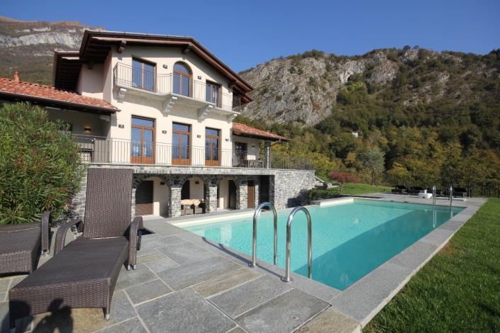 The new villa with swimming pool is located in the municipality of Tremezzina – in the Tremezzo area – in a dominant position with a wonderful lake view. It has an area of ??366 square meters and is arranged on 3 levels: on the ground floor elegant entrance, large living room with fireplace and exit to the porch, kitchen, living room, bathroom, closet and porch; on the first floor, 2 double bedrooms with private bathroom, wardrobe and balcony; in the basement there is a large living room with kitchenette, 2 bedrooms with bathroom, study, laundry room and closet. Designed and built with care and attention to details and first choice materials, the villa has a class A energy certification and fine finishes. The detached villa is surrounded by a large garden with excellent sun exposure and also has a double parking space. The swimming pool area is made of natural stone, with good sun exposure from morning to evening, with a panoramic view and a large solarium.
