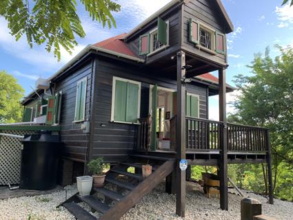 Located in Antigua’s rainforest in a delightful village setting close to an historic church, the house is constructed from the hard woods Greenheart and Purpleheart which have been used almost exclusively throughout. All doors and windows are also of solid wood.