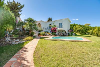 Truly stunning detached single level villa located on Estepona's New Golden Mile surrounded by a large private garden of over 1,100m2. Situated close to all general amenities, and just 1.2km (3 minute drive) away from the beautiful sandy beaches next to Laguna Beach, and some of the best beach clubs on the southern coast of Spain. This amazing villa briefly comprises; three bedrooms, two bathrooms, including a fitted kitchen, dining area and spacious lounge complete with fireplace, leading to a large terrace overlooking the stunning gardens. The garden has three chill-out areas, an open fireplace, a large private swimming pool plus a separate workshop. Further, on the main level, you have three bedrooms (master with en-suite facilities) plus a family bathroom - two of the bedrooms also enjoy good sea and mountain views. This unique villa offers stunning gardens complete with large swimming pool, pond and waterfall, and is only a short drive to the coast. The property also has a private off street covered parking area for up to two vehicles and air-conditioning throughout. A must view property in a breath-taking location!